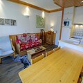 Step into this warm and renovated 3-room apartment, designed to accommodate up to seven guests. The dual-aspect layout ensures a cozy yet spacious atmosphere, with a south-facing balcony that invites you to soak in the alpine beauty. The apartment features a comfortable living room with a flat-screen TV and a single sofa bed, a dining area with an open kitchen equipped with modern amenities, and a variety of sleeping arrangements including bunk beds, single beds, and a sleeping alcove. Two bathrooms and a separate toilet add to the convenience, making it an ideal choice for families or groups of friends.