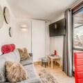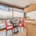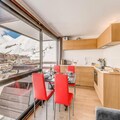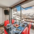 High above the world at 2100 meters, this premium studio cabin in the iconic Residence Le Palafour offers an unforgettable alpine escape in the heart of Tignes Le Lac. With ski-in/ski-out access, you can step directly onto the slopes and embrace the thrill of the French Alps. Imagine waking up to the breathtaking views of the Maison de Tignes and the majestic Grande Sassière from your east-facing balcony, as the crisp mountain air fills your lungs and the promise of adventure awaits. This sixth-floor retreat is a haven for those seeking both comfort and convenience in a world-class ski destination.