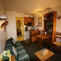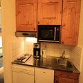This 24m² studio, part of a nine-story residence with an elevator, comfortably accommodates up to four guests. The thoughtfully designed space features two bunk beds in the entrance hall and two single beds in the living room, making it ideal for families or small groups. The kitchenette is equipped with essential appliances, including a refrigerator, oven/microwave combination, and dishwasher, allowing you to prepare hearty meals after a day on the slopes. Relax in the cozy living area with a TV, DVD player, and radio, or step out onto the south-facing balcony to soak in the alpine sun. The bathroom includes a bathtub and vanity, with a separate toilet for added convenience.