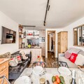 High above the shimmering waters of Tignes Le Lac, this premium studio offers a front-row seat to the alpine magic of one of France’s most iconic ski destinations. Imagine waking up to the sun rising over the lake, stepping onto your south-facing balcony, and breathing in the crisp mountain air as the slopes beckon just outside your door. With ski-in/ski-out access, you’re perfectly positioned to explore the world-class pistes of Tignes and Val d’Isère, making every day an adventure in the snow-covered paradise of the French Alps. \n\nThis thoughtfully designed studio, located on the 8th floor of the Residence LE PALAFOUR, comfortably accommodates up to four guests. The space is cleverly arranged with fold-out bunk beds in the entrance and a cozy living area featuring a sofa bed and a non-convertible sofa. The kitchenette is equipped with modern amenities, including ceramic hobs, a refrigerator with freezer compartment, a multi-function oven, and a dishwasher, ensuring you have everything you need to prepare meals after a day on the slopes. The bathroom offers a shower, sink, and separate toilet, complete with a washing machine for added convenience. Premium hotel services such as bed linen, towels, and end-of-stay cleaning (excluding the kitchen) are included, ensuring a hassle-free stay. \n\nStep outside and discover the vibrant heart of Tignes Le Lac. The residence is just 50 meters from the LE LAGON water park and 100 meters from the TIGNESPACE sports and cultural complex, offering a wealth of activities for both relaxation and adventure. The on-site shopping mall features ski schools, sports shops, a supermarket, a bakery, bars, and restaurants, providing everything you need within arm’s reach. Whether you’re here to ski, hike, or simply soak in the stunning alpine scenery, this studio is your gateway to unforgettable mountain memories. \n\nChoose this charming retreat for its unbeatable location, modern comforts, and breathtaking views, and let the magic of Tignes Le Lac become the backdrop to your next alpine escape.