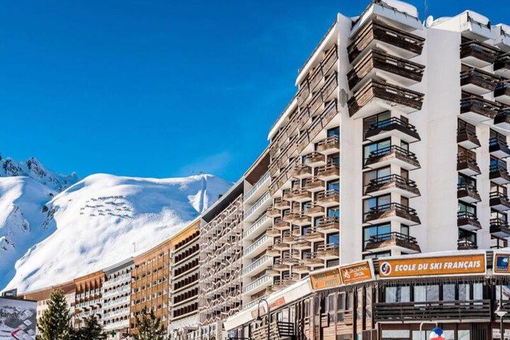 High above the shimmering waters of Tignes Le Lac, this charming studio invites you to experience the magic of the French Alps at 2,100 meters altitude. Whether you're here to carve through pristine slopes or soak in the serene alpine atmosphere, this residence offers the perfect blend of convenience and comfort. Imagine waking up to breathtaking views of the lake from your private balcony, with the promise of adventure just steps away. The vibrant energy of Tignes Le Lac surrounds you, creating a setting that’s as dynamic as it is picturesque. \n\nThe studio, thoughtfully renovated, is ideal for up to four guests. Its smart layout includes two cozy bunk beds in the entrance and a trundle bed in the living room, ensuring restful nights after days filled with exploration. The kitchenette is equipped with modern amenities such as an electric stovetop, refrigerator, oven, toaster, and dishwasher, making meal preparation a breeze. Relax in the inviting living area with a TV or refresh in the well-appointed bathroom featuring a shower, sink, and toilet. Every detail has been designed to enhance your stay, from the duvets on the beds to the private ski lockers for your gear.\n\nStep outside and discover the unbeatable location of the Residence LE PALAFOUR. With ski-in/ski-out access, you’re moments away from world-class slopes. The nearby LE LAGON water park and TIGNESPACE sports and cultural complex offer endless entertainment options, while the shopping mall below provides everything from sports shops and ski schools to bakeries, bars, and restaurants. Whether you’re seeking thrilling winter sports or summer alpine adventures, this studio places you at the heart of it all.\n\nChoose this cozy retreat for an unforgettable stay in Tignes Le Lac, where every moment is framed by the beauty of the Alps and the vibrant spirit of the region.