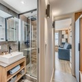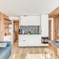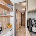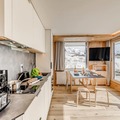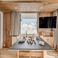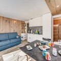 Completely refurbished in 2023, the studio combines modern elegance with thoughtful functionality. The south-facing living room is a cozy haven, featuring a plush sofa bed, a stylish dining area, and a fully equipped kitchen with top-tier appliances, including a bean-to-cup coffee machine for your morning rituals. A separate double cabin with bunk beds ensures restful nights, while the sleek bathroom, complete with a heated towel rail and washing machine, adds a touch of luxury. Additional amenities like a private ski locker, electric boot dryer, and high-speed Wi-Fi make this studio as practical as it is inviting.