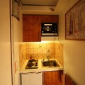 Located on the 7th floor, this recently renovated studio is thoughtfully designed for two guests, combining comfort and practicality in its 16m² space. The living area features a brand-new convertible sofa bed (updated in summer 2023) and a TV for cozy evenings in. The kitchenette is equipped with essential appliances, including electric hotplates, a mini oven, refrigerator, and kettle, making it easy to prepare simple meals. The bathroom is modern and functional, complete with a shower, sink, and toilet. North-facing, the studio offers a tranquil ambiance, perfect for unwinding after an active day.