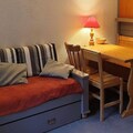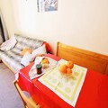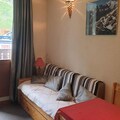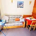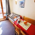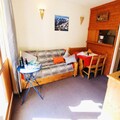 Awaken your senses in the heart of the French Alps, where this charming studio in the LE ROND POINT DES PISTES residence offers an unbeatable location for ski enthusiasts and mountain lovers alike. Situated just steps from the slopes and ski lifts, this cozy retreat ensures you can make the most of your alpine adventure. With shops, bakeries, and the French Ski School within 100 meters, everything you need is right at your fingertips, making it the perfect base for a seamless holiday experience. \n\nThis south-facing studio, located on the second floor, is thoughtfully designed to accommodate up to four guests. The living area features a pull-out bed, a dining space for four, and a TV for cozy evenings in. A separate cabin with bunk beds provides additional sleeping arrangements, making it ideal for families or small groups. The kitchenette is fully equipped with four electric burners, a refrigerator, an oven, and a dishwasher, allowing you to prepare hearty meals after a day on the slopes. The bathroom includes a bathtub and sink, with a separate toilet for added convenience. Step out onto the south-facing balcony to soak in the crisp mountain air and stunning alpine views.\n\nBeyond the comforts of the studio, the residence offers private ski lockers and elevator access, ensuring ease and practicality throughout your stay. The vibrant surroundings of the residence are brimming with après-ski options, from cozy bars to delightful restaurants serving local Savoyard specialties. In addition, the nearby funicular provides quick and easy access to the expansive ski areas, promising endless opportunities for exploration and adventure.\n\nWhether you're here to carve through pristine snow, savor the culinary delights of the region, or simply relax in the serene alpine atmosphere, this studio at LE ROND POINT DES PISTES is your gateway to an unforgettable mountain escape. Book your stay today and create memories that will last a lifetime.