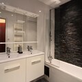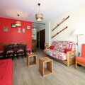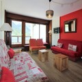 The 2-room apartment, spanning 56 m², comfortably accommodates up to six guests. Its thoughtful layout includes a cozy living room with a sofa bed, armchairs, and a TV, perfect for unwinding after a day on the slopes. The north-facing bedroom features bunk beds, creating a playful and practical space for families or groups. A separate, fully equipped kitchen with modern appliances invites you to prepare hearty meals, while the renovated bathroom with a double sink and bathtub adds a touch of luxury. The large south-facing terrace is the ideal spot to soak up the alpine sun and take in the stunning surroundings.