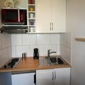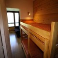 Inside, the studio is thoughtfully designed to accommodate up to four guests. The entrance features practical bunk beds, while the living area boasts a comfortable sofa bed and a flat-screen TV for relaxing evenings after a day on the slopes. The kitchenette is equipped with essential amenities, including a refrigerator, microwave/grill, and electric hotplates, making it easy to prepare hearty meals. A north-facing balcony invites you to soak in the crisp mountain air and admire the stunning alpine scenery. The bathroom, complete with a bathtub, sink, and toilet, ensures a comfortable stay.