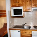 The studio, thoughtfully designed for up to four guests, features a practical layout that maximizes comfort and functionality. The entrance hall includes bunk beds, perfect for families or groups, while the living room offers a trundle bed and a flat-screen TV for cozy evenings. The kitchenette is equipped with modern appliances, including an electric stovetop, refrigerator, microwave, and dishwasher, making meal preparation a breeze after a day on the slopes. The bathroom, complete with a bathtub and toilet, ensures relaxation and convenience. With duvets provided for all beds, you'll enjoy restful nights in this welcoming space.