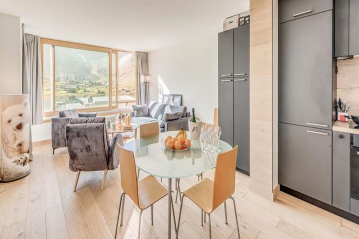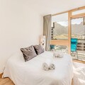 High above the shimmering waters of Tignes Lake, this stylish apartment in the LE PREMOU residence offers a serene alpine retreat with breathtaking views of the Grande Motte glacier and the Toviere massif. Located in the peaceful Crouze district at an altitude of 2100m, it’s just 50 meters from the Chardonnet ski lift and 100 meters from local shops, bakeries, and restaurants. Whether you’re here for thrilling ski adventures or tranquil lakeside moments, this property invites you to embrace the beauty of the French Alps in every season. \n\nStep into a completely renovated, premium-rated apartment designed with modern elegance and comfort in mind. The 42m² space features an open-plan kitchen equipped with ceramic hob, oven, dishwasher, refrigerator, and microwave, ensuring you have everything needed to prepare cozy meals after a day outdoors. The living room, with its large bay windows, floods the space with natural light and offers access to a balcony where you can soak in uninterrupted views of the lake and mountains. The apartment comfortably accommodates up to four guests, with a convertible sofa bed in the living area and a serene bedroom featuring a double bed, closet, and balcony access. \n\nBeyond the apartment, the LE PREMOU residence provides private ski lockers and is perfectly situated for easy access to the slopes. Nearby, the LE LAGON aquatic center and TIGNESPACE sports and cultural complex offer additional leisure options, while the surrounding area boasts a variety of dining and shopping opportunities. In summer, the lake transforms into a hub for water sports and hiking trails, making this location ideal year-round. \n\nWith its premium amenities, stunning views, and unbeatable proximity to both nature and convenience, this apartment is your gateway to unforgettable alpine experiences. Whether you’re seeking adventure or relaxation, LE PREMOU promises a holiday filled with cherished memories.