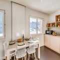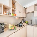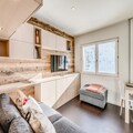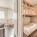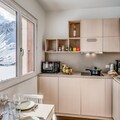 Located on the 5th floor of a six-story residence with elevators, this 35m² premium apartment has been thoughtfully designed to maximize comfort and style. The living room features a cozy sofa bed for two, a flat-screen TV, and two large south-facing windows that flood the space with natural light and showcase the stunning alpine scenery. The fully equipped open-plan kitchen includes a dishwasher, oven, microwave, ceramic hob, and refrigerator, making it easy to prepare meals after a day of exploration. A separate bedroom with two single beds ensures restful nights, while the modern bathroom with a walk-in shower and washing machine adds extra convenience.