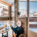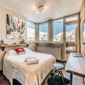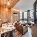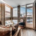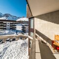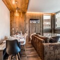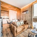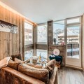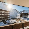 High above the serene slopes of Tignes Le Lavachet, this refined residence invites you to experience the charm of alpine living at 2,100 meters altitude. Bathed in sunlight from its south- and east-facing bay windows, the apartments at Les Roches Rouges offer breathtaking views of La Grande-Motte and La Grande Sassière, creating a tranquil retreat that blends elegance with nature’s grandeur. Whether you’re sipping coffee on your private balcony or warming up by the wood-burning stove, every moment feels like a celebration of the mountains. \n\nThis premium 3-room apartment spans 55 m² and is thoughtfully designed to accommodate up to six guests. The living room features a double sofa bed, flat-screen TV, and a cozy dining area, while the open-plan kitchen is equipped with modern appliances including a ceramic hob, refrigerator, oven, dishwasher, and microwave. Two inviting bedrooms—one with a double bed and the other with two single beds—ensure restful nights, complemented by a stylish bathroom with a bathtub and an additional shower room. With hotel services like fresh linens, towels, and end-of-stay cleaning included, your stay is as effortless as it is comfortable. \n\nSituated just 20 meters from the slopes, the residence offers unparalleled access to the Chaudannes and Pâquis chairlifts, making it a dream destination for ski enthusiasts. A short 150-meter stroll leads to local shops, including a supermarket, bakery, and restaurants, while the resort’s free shuttle service connects you to the vibrant hubs of Tignes-le-Lac and Tignes-Val Claret in minutes. Whether you’re exploring the pistes or soaking in the alpine ambiance, Les Roches Rouges is your gateway to unforgettable mountain adventures. \n\nChoose this exceptional property for its blend of comfort, convenience, and captivating views, and let the magic of Tignes create memories that will last a lifetime.