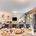 High above the alpine valleys, where the snow glistens under the morning sun, this premium apartment in Tignes 1800 offers an unparalleled mountain retreat. With breathtaking views of the Mont Blanc massif and direct access to the slopes via the Boisses cable car, your alpine adventure begins the moment you step outside. Whether you're here for the thrill of skiing or the serenity of summer hikes, the charm of Tignes 1800 will captivate you. The village, bathed in sunlight, boasts its own ski school, cozy restaurants, and local shops, making it a vibrant hub for visitors year-round. \n\nLocated on the fifth floor of the prestigious Lodge des Neiges C residence, this spacious 105 m² apartment comfortably accommodates up to 10 guests. Designed for both comfort and style, the apartment features underfloor heating, a large dining area with seating for 10, and a cozy lounge with a convertible sofa. The fully equipped kitchen includes modern appliances such as a Nespresso machine, induction hob, and washer-dryer, ensuring a seamless stay. Four beautifully appointed bedrooms, including a master suite with an en-suite shower room, provide restful retreats after a day of alpine adventures. Additional amenities include a private ski locker, covered parking, and hotel services like Wi-Fi, linens, and end-of-stay cleaning. \n\nGuests of the residence enjoy exclusive access to a relaxation area featuring an indoor heated pool, children’s paddling pool, cardio-training room, jacuzzi, sauna, and hammam. For ultimate indulgence, the \