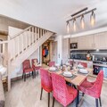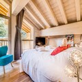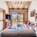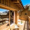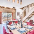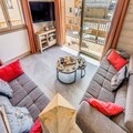 High above the serene alpine landscapes of Tignes 1800, this luxurious duplex apartment offers an unparalleled retreat for mountain enthusiasts. With breathtaking views of the Mont Blanc massif and direct access to the slopes via the Boisses cable car, your alpine adventure begins the moment you step outside. The village itself is bathed in morning sunlight, creating a warm and inviting atmosphere that perfectly complements the charm of its ski school, restaurants, and shops. Whether you’re here to carve through fresh powder or explore the vibrant summer trails, this residence places you in the heart of it all. \n\nSpanning two spacious levels, the apartment comfortably accommodates up to eight guests, making it ideal for families or groups. The first floor features a cozy living area with a sofa bed, armchairs, and a flat-screen TV, all framed by a large bay window that opens onto a furnished balcony. The fully equipped kitchen is a haven for culinary enthusiasts, complete with modern appliances like a Nespresso machine and a dishwasher. Upstairs, you’ll find three beautifully appointed bedrooms, including a master suite with a double bed and ample storage. Two bathrooms, underfloor heating, and thoughtful touches like a ski locker with boot warmers ensure maximum comfort during your stay.\n\nGuests also enjoy exclusive access to the residence’s relaxation area, which includes an indoor heated pool, a children’s paddling pool, a cardio-training room, and a luxurious spa with a jacuzzi, sauna, and hammam. For added indulgence, the \