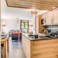 High above the Tarentaise Valley, where the alpine air is crisp and invigorating, lies the Lodge des Neiges C residence in Tignes 1800. This premium property offers a harmonious blend of luxurious comfort and breathtaking mountain views, with Mont Blanc’s majestic peaks as your backdrop. Whether you’re seeking thrilling ski adventures or tranquil summer escapes, this alpine retreat promises unforgettable moments in the heart of the French Alps. The village of Tignes 1800, bathed in sunlight from morning, welcomes you with its charming ambiance, ski school, and local eateries just steps away. \n\nInside the spacious 120m² apartment, every detail has been thoughtfully designed for your comfort. Accommodating up to 10 guests, the residence boasts four elegant bedrooms, each with its own en-suite bathroom, ensuring privacy and relaxation for all. The living room, with its large bay windows and furnished balcony, invites you to soak in panoramic views while enjoying the warmth of the wood-burning stove. A fully equipped kitchen, complete with modern appliances and a Nespresso machine, makes preparing meals a delight. Additional conveniences include underfloor heating, Wi-Fi, and hotel services such as fresh linens and end-of-stay cleaning. \n\nBeyond the apartment, the residence offers exclusive access to a relaxation area featuring an indoor heated pool, children’s paddling pool, jacuzzi, sauna, and hammam. For those seeking extra indulgence, the “Ô des Cimes” spa provides treatments and massages for an additional fee. The Boisses cable car, located nearby, ensures seamless ski-in/ski-out access to the renowned Tignes-Val d'Isère ski area, while summer visitors can explore hiking trails, mountain biking routes, and alpine festivals. \n\nWhether you’re drawn by the allure of pristine slopes or the serenity of mountain summers, the Lodge des Neiges C residence is your gateway to the best of Tignes 1800. Create lasting memories in a setting that combines elegance, adventure, and the timeless beauty of the Alps.