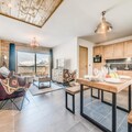 High above the Tarentaise Valley, where the majestic Mont Blanc massif dominates the horizon, this premium alpine retreat in Tignes 1800 offers a blend of modern luxury and authentic mountain charm. Imagine waking up to panoramic views of snow-dusted peaks, stepping onto your private balcony to breathe in the crisp alpine air, and planning a day of adventure in the renowned Tignes-Val d'Isère ski area, accessible via the nearby Boisses cable car. Whether you’re here for winter’s pristine slopes or summer’s lush trails, this residence places you at the heart of the Alps’ natural beauty. \n\nInside, the apartment is thoughtfully designed to accommodate up to eight guests across two double bedrooms, a cozy sleeping cabin, and a convertible sofa bed in the living room. The fully equipped kitchen invites you to create hearty meals after a day outdoors, while the spacious living area with its flat-screen TV and DVD player provides the perfect spot to unwind. Two bathrooms, one with a bathtub and the other with a shower, ensure comfort and convenience for all. Additional amenities include underfloor heating, a washer/dryer, and a ski locker, making your stay as seamless as possible.\n\nBeyond the apartment, the Lodge des Neiges C residence offers an exceptional relaxation area complete with a heated indoor pool, children’s paddling pool, jacuzzi, sauna, hammam, and a cardio-training room. For added indulgence, the on-site spa provides treatments and massages to rejuvenate both body and mind. The village itself boasts ski schools, restaurants, and shops, ensuring everything you need is within easy reach.\n\nWhether you’re seeking thrilling descents, serene hikes, or simply a tranquil escape surrounded by breathtaking scenery, this alpine haven promises an unforgettable getaway. Let the timeless allure of Tignes 1800 and the grandeur of Mont Blanc inspire your next adventure.