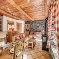 High above the Tarentaise Valley, in the charming village of Tignes les Brévières, Chalet Les Champs du Pont offers an alpine retreat that combines tradition with modern comfort. Known for its sunny slopes and welcoming atmosphere, this picturesque village at 1650 meters is part of the renowned Tignes-Val d'Isère ski area, attracting skiers of all levels with its extensive trails and beginner-friendly slopes. Here, the beauty of the mountains meets the warmth of a close-knit community, creating the perfect setting for unforgettable holidays. \n\nThe Grande Ferme apartment, located on the first floor of the chalet, is a spacious haven designed for groups of up to 16 guests. With 205 square meters of living space, it features seven bedrooms and five bathrooms, ensuring comfort and privacy for everyone. The living room, complete with a cozy fireplace and large balconies, invites you to relax while enjoying stunning views of the slopes and surrounding peaks. The fully equipped kitchen, boasting two ovens, a wine cellar, and modern appliances, makes meal preparation a delight, while the dining area with ample seating is perfect for sharing meals and stories after a day on the slopes. \n\nStep outside and you’re just 20 meters from the Sache cable car, offering seamless access to the ski area. The village itself is home to ski schools, shops, and the renowned Armailly restaurant, which even offers meal delivery for added convenience. In summer, the chalet transforms into a lush retreat with a landscaped garden and BBQ, perfect for enjoying the alpine sunshine. \n\nWhether you’re here for thrilling winter sports or tranquil summer hikes, Chalet Les Champs du Pont provides the ideal base for exploring the wonders of the French Alps. With breathtaking views, luxurious amenities, and the charm of Tignes les Brévières, this is where memories are made.