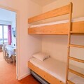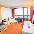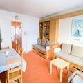 The apartment, located on the 5th floor with elevator access, comfortably accommodates up to six guests. Its thoughtful layout includes a cozy living room with two single sofa beds, a dining area, and a well-equipped kitchen featuring an electric hob, oven, and dishwasher. A separate bedroom with a double bed, a sleeping area with bunk beds, and a modern bathroom with a separate toilet provide both comfort and practicality. The ski locker on the ground floor ensures your gear is always ready for the next adventure.