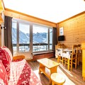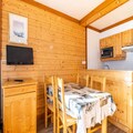 This cozy 28m² studio, located on the 4th floor with elevator access, is thoughtfully designed to accommodate up to four guests. The space features a well-equipped kitchen with an electric hob, microwave, and dishwasher, making it easy to prepare meals after a day of exploration. The living room includes a dining area and a trundle bed, while the mountain corner offers a snug bunk bed setup. A separate bathroom and toilet ensure convenience, and the ski locker on the ground floor keeps your gear secure and ready for action.
