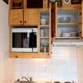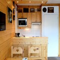 Inside, the 28m² studio is thoughtfully designed to accommodate up to four guests. The living room features a cozy trundle bed for two, while the entrance alcove is equipped with a bunk bed, perfect for families or small groups. The kitchenette is compact yet fully equipped, boasting an electric hob, microwave/grill combo, and dishwasher, making it easy to prepare hearty meals after a day on the slopes. A modern bathroom and separate toilet add to the convenience, while the ski locker on the ground floor ensures your gear is always ready for action.
