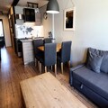 Spanning 39m², the apartment comfortably accommodates up to six guests. The thoughtfully designed layout includes a living room with a sofa bed, a bedroom featuring a bunk bed and trundle bed, and a fully equipped kitchen with an electric hob, oven, and dishwasher. After a day on the slopes, unwind in the warm and inviting living space, or prepare a hearty meal to share with loved ones. Additional amenities such as a ski locker on the ground floor and a separate bathroom and toilet ensure a hassle-free stay. Please note, this is a non-smoking apartment, and pets are not allowed.