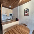Spanning 45m², this thoughtfully designed two-room apartment comfortably accommodates up to six guests. The living room, equipped with a cozy sofa bed and a television, opens onto a balcony where you can unwind after an active day. The fully equipped kitchen, complete with an oven, induction hob, and dishwasher, makes meal preparation a breeze. A separate bedroom with a double bed and its own balcony, along with a sleeping area featuring a bunk bed, ensures restful nights for everyone. Modern amenities, including a ski locker and an elevator, add to the convenience of your stay.