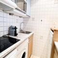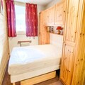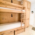 Inside, the apartment boasts a well-thought-out layout designed to accommodate up to six guests. The living room features a comfortable trundle bed and a television for relaxing evenings, while the separate bedroom with a double bed and a nook with bunk beds offer flexible sleeping arrangements. The kitchen is fully equipped with modern appliances, including a ceramic hob, oven, and dishwasher, making meal preparation a breeze. Additional perks include a washing machine and a ski locker on the ground floor for hassle-free storage.