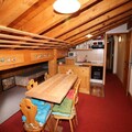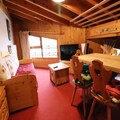 This cozy 2-room apartment, located on the 4th and top floor of the 'Le Rosset' residence, is thoughtfully designed to accommodate up to six guests. The open-plan kitchen is equipped with modern amenities, including an oven and dishwasher, making it easy to prepare hearty meals after a day on the slopes. The apartment features a comfortable bedroom with a double bed and two single beds, as well as a living room with a trundle bed. A separate bathroom and toilet ensure added privacy and convenience. While the west-facing windows fill the space with natural light, the sloping ceilings add a touch of alpine charm. A large cellar provides practical storage for bikes in summer and ski gear in winter.