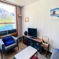 With the shimmering waters of Tignes Le Lac just outside your window and the majestic Grande Motte glacier in the distance, this inviting apartment offers a front-row seat to the beauty of the French Alps. Located in the heart of Tignes Le Lac, the residence combines tranquility with convenience, placing you steps away from shops, ski slopes, and ski school departures. Whether you're here to carve through pristine snow or embrace summer adventures, this is your gateway to unforgettable alpine experiences. \n\nSpanning 41m², this thoughtfully designed two-room apartment comfortably accommodates up to six guests. The southeast-facing balcony, measuring 9m², invites you to soak in breathtaking views while enjoying your morning coffee or evening glass of wine. Inside, you'll find a fully equipped kitchen with electric hob, microwave, dishwasher, and oven, making meal preparation a delight. The living room features a cozy sofa bed and television, while the bedroom offers two bunk beds, providing flexible sleeping arrangements for families or groups. Modern amenities like Wi-Fi and a ski locker on the ground floor ensure your stay is as seamless as it is enjoyable. \n\nBeyond the residence, Tignes Le Lac offers a wealth of activities year-round. In winter, take advantage of preferential rates on ski lift passes for the renowned Tignes and Val d'Isère ski domains. In summer, the My Tignes card unlocks a world of outdoor adventures, from mountain biking to paddleboarding. With shops, restaurants, and entertainment at your fingertips, every moment is filled with possibility. \n\nWhether you're seeking thrilling slopes, serene lakeside relaxation, or the vibrant energy of a world-class alpine resort, this apartment is your perfect base for an unforgettable escape.