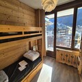 This 58m² apartment, located on the 4th floor of the Curling B Tour residence, is thoughtfully designed to accommodate up to eight guests. The south-facing balcony invites you to soak in the alpine sunshine and stunning views after a day of adventure. Inside, the apartment features a fully equipped kitchen with a dishwasher, oven, and ceramic hob, perfect for preparing hearty meals. The living room includes a trundle bed for two, while the master bedroom boasts a double bed and an en-suite shower room. A second bedroom with bunk beds comfortably sleeps four, making it ideal for families or groups of friends. Additional amenities include a ski locker on the ground floor and a separate bathroom and toilet for added convenience.