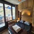 In the vibrant heart of Tignes Val Claret, this charming alpine apartment offers an unbeatable location for ski enthusiasts and mountain lovers alike. Imagine stepping out of your residence and being just 100 meters from the slopes and ski schools, with ski-in/ski-out access making every day on the mountain effortless. The lively atmosphere of Val Claret surrounds you, with shops, bakeries, restaurants, and après-ski bars right at your doorstep, ensuring convenience and entertainment throughout your stay.