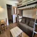 High above the shimmering valleys of Tignes, this cozy studio in the Le Rond Point des Pistes A residence offers an unparalleled alpine escape. Imagine waking up to the crisp mountain air and stepping out onto your east-facing balcony to admire the snowy peaks that surround you. Whether you're here for thrilling winter sports or summer adventures, this ski-in ski-out property places you at the heart of it all, with the snow front and ski lifts just steps away, and the funicular ready to whisk you up to the majestic Grande-Motte Glacier at 3,040 meters. \n\nDesigned to accommodate up to three guests, this 15m² studio is compact yet thoughtfully equipped for a comfortable stay. The living room features a sofa bed and a bunk bed, perfect for small families or close friends. The kitchenette includes ceramic hobs, a refrigerator, and a microwave, allowing you to prepare meals after a day of exploring the slopes or hiking trails. The shower room with toilet ensures convenience, while the ski locker in building A2 keeps your gear secure and easily accessible. Pets are welcome for a small fee, making this a perfect choice for travelers who want to bring their furry companions along.\n\nThe residence is surrounded by vibrant amenities, including restaurants, bars, ski equipment rental shops, and supermarkets, ensuring everything you need is within reach. During winter, enjoy preferential rates on Tignes and Val d'Isère ski lift passes, while summer brings the My Tignes card, unlocking a world of activities from mountain biking to water sports. Parking is regulated, so be sure to reserve your spot in advance for a hassle-free stay.\n\nWhether you're chasing powdery slopes or sunny alpine trails, this charming studio is your gateway to unforgettable memories in the breathtaking landscapes of Tignes Val Claret. Book your stay now and immerse yourself in the magic of the French Alps.