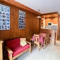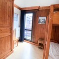 Spanning a generous 63m², this south-facing apartment is designed to accommodate up to nine guests, making it perfect for families or groups of friends. The living room features a cozy trundle bed and a television, creating a warm space to unwind after a day on the slopes. The fully equipped kitchen, complete with a grill oven, ceramic hob, and dishwasher, allows you to prepare hearty meals with ease. The sleeping arrangements include a double bedroom with an en-suite shower, a sleeping alcove with a bunk bed, and a second bedroom with a mix of bunk and trundle beds, ensuring everyone has a comfortable place to rest. A private balcony offers stunning views of the surrounding peaks, while the ski locker on the ground floor adds an extra layer of convenience.