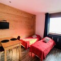 Amid the serene charm of Les Almes in Tignes le Lac, this cozy studio apartment offers an inviting retreat for couples or solo travelers seeking the perfect alpine getaway. Situated just 500 meters from the heart of Tignes le Lac, you'll enjoy easy access to shops, restaurants, and the renowned ski slopes that make this region a favorite among winter sports enthusiasts. The east-facing balcony provides a tranquil spot to soak in the crisp mountain air and morning sunlight, setting the tone for a day of adventure. \n\nThis 24m² studio, located on the second floor of the unrenovated Chaudes Almes residence, is thoughtfully designed for comfort and practicality. The living area features two single beds and a television, creating a cozy space to unwind after a day on the slopes. The compact yet well-equipped kitchen includes an oven, microwave, and dishwasher, making it easy to prepare meals during your stay. A modern shower room with WC completes the space, ensuring all the essentials are at your fingertips. Please note, the residence does not have an elevator or ski locker, but pets are welcome for a small supplement.\n\nIn winter, take advantage of exclusive rates on Tignes and Val d'Isère ski lift passes, while summer brings the My Tignes card, granting access to a host of exciting activities like hiking, mountain biking, and water sports. Whether you're here to carve through pristine snow or explore the breathtaking alpine landscapes, this studio places you at the heart of it all. With additional services such as bed linen rental, parking reservations, and end-of-stay cleaning available, your stay is tailored for convenience and relaxation. Discover the magic of Tignes le Lac and create memories to cherish year-round.