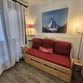 Renovated 24m² studio cabin equipped for 5 people and located on the ground floor of the "Les Olympiques" residence, in Tignes 1800 - Les Boisses, with direct access to the slopes and local shops.
