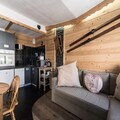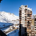 High above the picturesque Tignes Val Claret, this cozy alpine apartment offers a welcoming retreat for adventurers and relaxation seekers alike. Perched on the 12th floor of the Le Schuss residence, it boasts a northwest-facing balcony where you can unwind with breathtaking views of the surrounding peaks and valleys. Whether you're here for the thrill of skiing or the serenity of the mountains, this property places you at the heart of it all. \n\nDesigned for up to five guests, the 35m² apartment features a thoughtful layout that combines comfort and practicality. The living room, with its plush sofa bed and television, is perfect for cozy evenings, while the fully equipped kitchenette—complete with an electric hob, dishwasher, microwave, and oven—makes meal preparation a breeze. A separate bedroom with a double bed and dressing room ensures restful nights, and the modern walk-in shower room adds a touch of luxury. Additional conveniences, such as a washing machine and a ski locker on the ground floor, make this apartment an ideal choice for a hassle-free stay.\n\nLocated just 300 meters from the ski slopes and lifts, you'll have effortless access to some of the best skiing in the French Alps. The vibrant Val Claret Haut district is right at your doorstep, offering a variety of shops, a cinema, and lively après-ski options. In summer, the My Tignes card unlocks a world of activities, from mountain biking to paddleboarding, ensuring year-round excitement for all ages.\n\nWhether you're carving through fresh powder or exploring alpine trails under the summer sun, this charming apartment provides the perfect base for unforgettable mountain adventures. With its prime location, modern amenities, and stunning views, your alpine escape awaits.