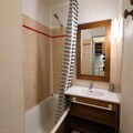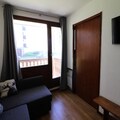 This 23m² studio cabin is thoughtfully designed to accommodate up to four guests. The entrance hall offers practical storage space, while the kitchenette is equipped with a microwave, stovetop, and dishwasher, perfect for preparing hearty meals after a day on the slopes. The living area features a comfortable sofa bed and television, creating a cozy space to unwind. A sleeping alcove with a triple bunk bed (double below, single above) provides a snug yet functional sleeping arrangement. The apartment also includes a bathroom with a separate toilet and a ski locker on the ground floor for added convenience.