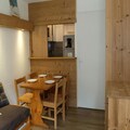 High above the shimmering peaks of the French Alps, this cozy studio cabin in Tignes Val Claret offers an unbeatable ski-in ski-out experience. Imagine waking up to the crisp mountain air, stepping onto your south-facing balcony, and marveling at the panoramic views of snow-dusted slopes. Located at the foot of the funicular leading to the Grande-Motte Glacier at a breathtaking 3,050 meters, this residence places you right in the heart of alpine adventure. Whether you're here for winter thrills or summer exploration, the Rond Point des Pistes B residence is your gateway to unforgettable moments. \n\nDesigned for up to four guests, this 22m² studio cabin combines comfort and practicality. The living room features a pull-out bed for two singles, while a cozy nook with bunk beds provides additional sleeping arrangements. The kitchenette is equipped with four electric hobs, an oven, refrigerator, and dishwasher, making it easy to prepare meals after a day on the slopes. A separate bathroom and toilet ensure convenience, while the south-facing balcony invites you to relax and soak in the alpine ambiance. For added ease, a ski locker is available on the ground floor, and pets are welcome for a small supplement. \n\nStep outside and find everything you need within arm's reach. From ski rental shops and schools to supermarkets, restaurants, and après-ski bars, the lively Tignes Val Claret village ensures you’re never far from excitement. In summer, the My Tignes card unlocks a world of activities, from mountain biking to paddleboarding on serene alpine lakes. Winter or summer, this destination offers endless opportunities to push your limits and embrace the beauty of the mountains. \n\nWhether you're chasing powder on the glacier or exploring scenic trails in the sunshine, this charming studio cabin is your perfect base for an alpine escape. Book now and let the magic of Tignes Val Claret create memories to last a lifetime.