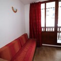 This thoughtfully designed 14 m² studio is perfect for two guests, offering a comfortable and intimate retreat after a day of alpine adventures. The living area features a convenient trundle bed that transforms into two single beds, while the kitchenette is equipped with ceramic hobs, a refrigerator, and a microwave for preparing simple meals. The east-facing balcony invites you to soak in the crisp mountain air and morning sunlight, creating the perfect spot for a quiet coffee or evening relaxation. Additional amenities include a ski locker on the ground floor and easy access via an elevator to the first floor.