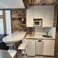 High above the shimmering peaks of Tignes Val Claret, this charming studio cabin offers a gateway to alpine adventure like no other. With the funicular to the Grande-Motte Glacier just steps away, you’ll find yourself transported to breathtaking heights of 3,050 meters, where skiing and snowboarding enthusiasts can revel in pristine slopes. The south-facing balcony invites you to soak in the sun and marvel at the majestic mountain views, creating the perfect backdrop for your holiday escape. Whether you’re here to conquer the pistes or simply unwind, this cozy retreat promises an unforgettable stay. \n\nDesigned to accommodate up to four guests, the studio blends comfort and practicality in its 26 m² layout. The equipped kitchen features a dishwasher, mini oven, and ceramic hob, making meal preparation a breeze after a day of alpine exploration. The living area is furnished with a comfortable sofa bed, while the cabin offers bunk beds for a restful night’s sleep. Additional amenities include a boot dryer, ski locker, and a separate bathroom and toilet, ensuring convenience throughout your stay. \n\nSituated in the heart of Tignes Val Claret, the residence is surrounded by essential facilities, including a supermarket, ski rental shops, ski schools, and a variety of restaurants and bars for après-ski enjoyment. In winter, parking is regulated, but the agency can assist with reservations to make your arrival seamless. During summer, the My Tignes card unlocks a world of activities, from hiking to mountain biking, ensuring year-round excitement. \n\nWhether you’re chasing powder in winter or exploring alpine trails in summer, this ski-in, ski-out studio is your perfect base for adventure. With exclusive services like discounted lift passes and tailored amenities, every detail is designed to enhance your stay. Experience the magic of Tignes Val Claret and create memories that will last a lifetime.