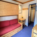 Step into this charming 15m² studio, thoughtfully designed for two guests. The living area features a trundle bed that transforms into two comfortable singles, a dining nook for intimate meals, and a television for cozy evenings in. The kitchenette is equipped with an electric hob, refrigerator, and oven, ensuring you have everything you need to prepare hearty alpine meals. The south-facing balcony invites you to soak in the sunshine and savor the mountain vistas, while the convenient ski-in/ski-out access ensures your days on the slopes start and end effortlessly. A private ski locker on the ground floor adds to the convenience, making this studio a practical yet delightful retreat.