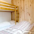 Step inside to discover a thoughtfully designed space spanning 55m², ideal for up to 8 guests. The open-plan kitchen is fully equipped with modern appliances, including an electric hob, oven, microwave, dishwasher, and refrigerator-freezer, making it perfect for preparing hearty meals after a day of exploration. The living room, with its cozy sofas and television, provides a welcoming space to unwind. The sleeping arrangements are versatile and comfortable, featuring a bedroom with two bunk beds, a second bedroom with a double bed on the mezzanine, and two single beds below. A shower room with a toilet, along with the added convenience of a washing machine and dryer, ensures a hassle-free stay.