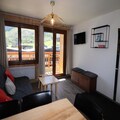 This cozy 33m² apartment, located on the 4th floor of the Grande Balme II residence, is thoughtfully designed to accommodate up to four guests. The living room features a comfortable sofa bed and a television, while the separate bedroom offers a plush double bed for restful nights. The fully equipped kitchen, complete with electric hobs, a microwave, dishwasher, and washing machine, ensures you have all the conveniences of home. Modern amenities like free WiFi and a ski locker add to the ease of your stay.