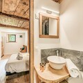 Spanning three levels and accommodating up to 12 guests, Chalet Lo Soli combines traditional alpine aesthetics with modern amenities. The ground floor features practical conveniences such as a boot dryer, laundry facilities, and two master suites with en-suite bathrooms. The first floor is the heart of the home, with a spacious living and dining area centered around a cozy fireplace, a fully equipped kitchen, and a west-facing balcony perfect for soaking in the alpine views. The upper level offers additional bedrooms, including a charming attic room, ensuring ample space for families or groups of friends.