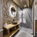 The Tajj is designed to host up to 10 guests in absolute comfort. Spread across two levels, it features five en suite bedrooms, each with the option of twin or double beds, ensuring flexibility for families or groups of friends. The ground floor boasts a spacious living room with a television, a fully equipped kitchen, a dining area, and even a bar for evening gatherings. Indulge in the spa area, complete with a hammam and sauna, perfect for unwinding after a day on the slopes. Upstairs, two additional en suite bedrooms offer both showers and bathtubs, providing a touch of luxury to your stay.