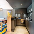 Step inside to discover a beautifully designed space that combines modern elegance with cozy alpine charm. The open-plan kitchen and dining area invite you to gather for meals, while the living room, complete with a TV and access to a south-facing balcony, is perfect for unwinding after a day on the slopes. The apartment comfortably accommodates up to seven guests across its four bedrooms, including a master suite with an en-suite bathroom, two double bedrooms with flexible twin bed options, and a single bedroom. High-end amenities such as a BOSE sound system in each bedroom, Wi-Fi, and luxurious linens ensure a comfortable and indulgent stay.