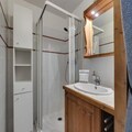 Spanning 80m², this spacious duplex is thoughtfully designed to accommodate up to seven guests. On the lower level, you’ll find an open-plan kitchen and living area that opens onto a balcony, perfect for enjoying your morning coffee with panoramic views. The layout includes a double bedroom with an en-suite shower room, a twin bedroom that can be converted into a double, and a separate bathroom and WC. Upstairs, the mezzanine hosts three cozy single beds, making it ideal for families or groups of friends. Modern amenities such as Wi-Fi, a flat-screen TV, and a private covered parking space ensure a comfortable and stress-free stay. A ski locker is also available for your convenience.