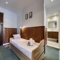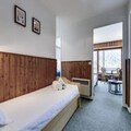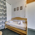 Inside, the apartment is thoughtfully designed to accommodate up to four guests. The layout includes a comfortable living room with a TV, a fully equipped kitchen for preparing hearty meals, and a single bedroom with two twin beds. Additional sleeping space is provided by a pull-out sofa bed in the entrance. The bathroom and separate WC ensure convenience, while the included services such as bed linens, towels, and end-of-stay cleaning add to the ease of your stay.