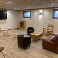 Basement: Bedroom with bathroom, washing room(tumble dryer, washing machine), fitness room(fitness equipment), recreation room, pantry(fridge, freezer), single bed(80 x 190 cm), single bed(80 x 190 cm), single bed(80 x 190 cm), single bed(80 x 190 cm), TV, video, bar, shower(walk-in shower), washbasin, washbasin, toilet