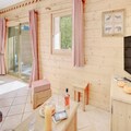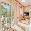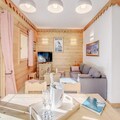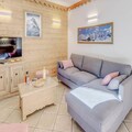 This spacious 3-room apartment comfortably accommodates up to 6 guests, with two well-appointed bedrooms, one featuring a double bed and the other two single beds. The apartment includes a pull-out sofa in the living area, ideal for additional sleeping space. The property is non-smoking and does not permit pets. Guests can enjoy access to the residence's swimming pool, spa (seasonal), and other hotel services such as bed linens, towels, and free Wi-Fi. A ski locker and covered parking are also available, with direct access to the chalets via an elevator.