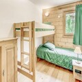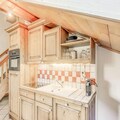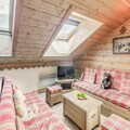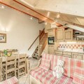 This spacious duplex apartment is perfect for families or groups, accommodating up to 8 guests. It features 3 bedrooms, including a suite with a double bed and a shower room. There are also 2 single beds and a set of bunk beds in the other rooms, as well as 2 pull-out sofa beds in the living area. Guests can enjoy the comfort of a separate bathroom with a bathtub, a vanity unit, and a towel radiator, along with a separate WC. The apartment is non-smoking, and pets are not allowed.