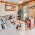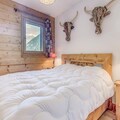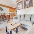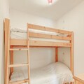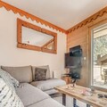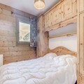 This cozy apartment, located on the first floor of a well-maintained chalet, is designed to accommodate up to 6 people. It features two comfortable bedrooms with double beds, a mountain corner with bunk beds, and a living room with a non-convertible sofa. The property is non-smoking, and pets are not allowed, ensuring a peaceful and allergy-free environment. A free covered parking space and ski locker are included for convenience, and the apartment comes with Wi-Fi and TV for entertainment.